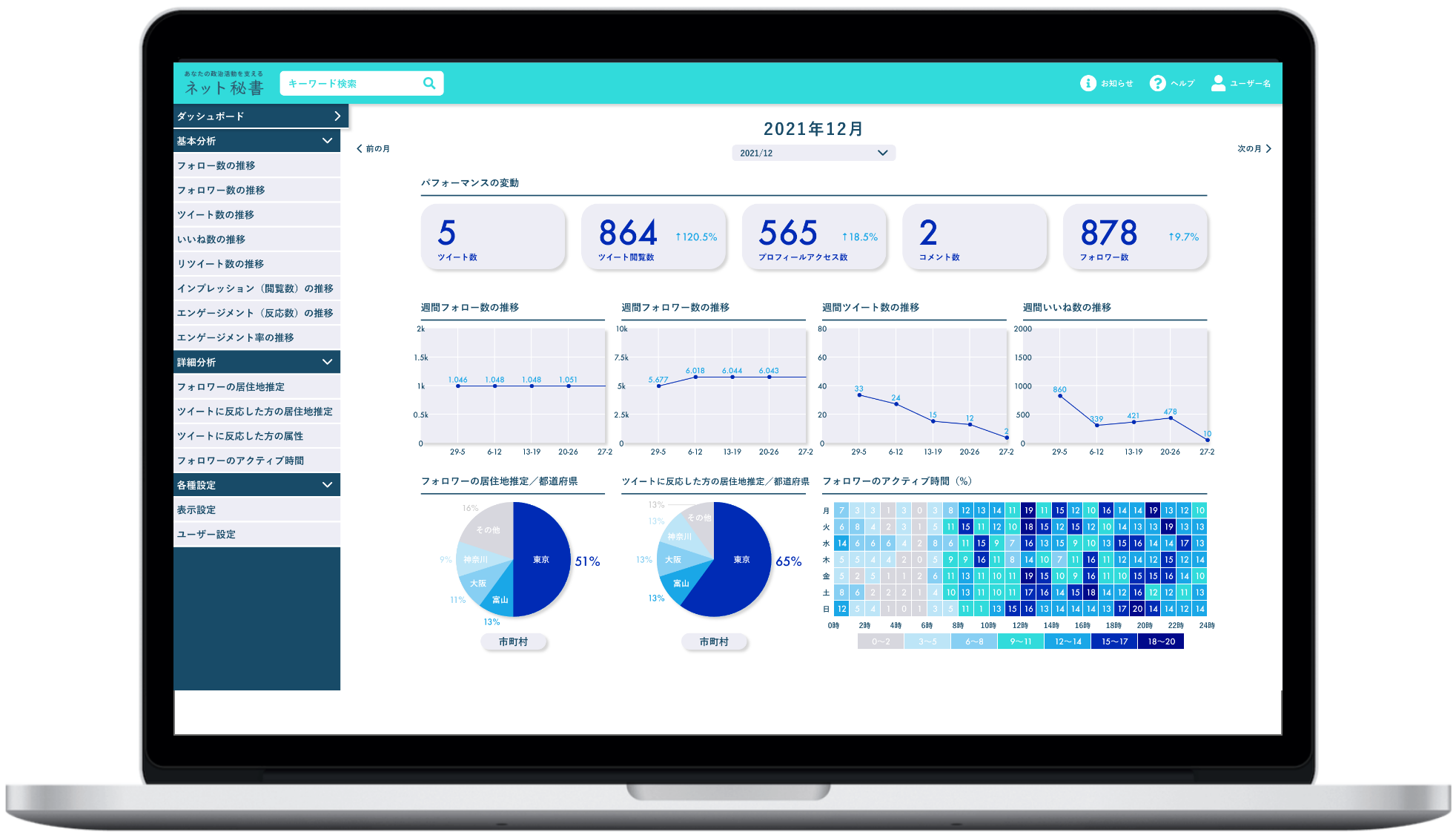 Twitterの週次レポートを分かりやすく配信します!フォロワー数やインプレッション数はもちろん、地元市民の割合を推計できるから、届けたい人に届くSNS運用を一緒に目指しましょう!